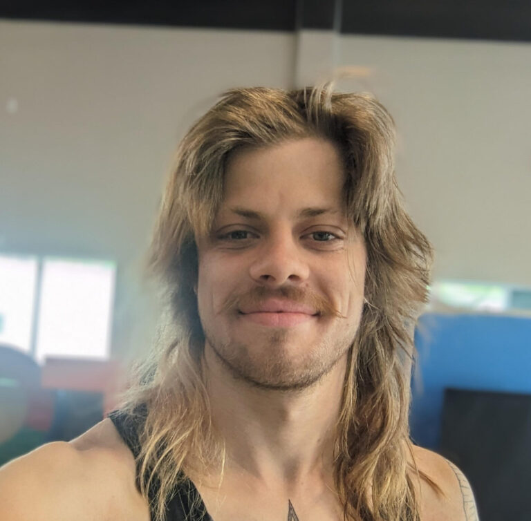 In 2023 I started combining my gymnastics and dance background to pursue acro dance, while also training in martial arts tricking and various circus disciplines. For the past two years I’ve been teaching acro dance, strength training, and hand balancing here at Superhero Fitness.